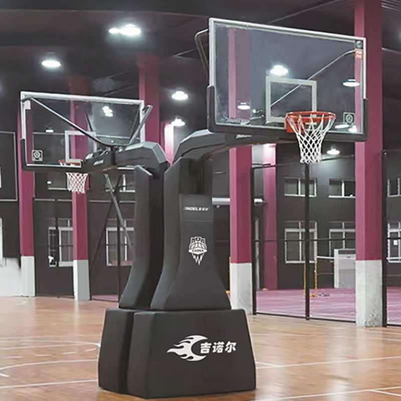 1.四周佩戴120MM软体海绵护套,室内外使用, 篮球架为国际篮联(FIBA)认证产品,适用场地至少34.5M,全部篮球架尺寸遵循国际篮球联合会(FIBA -2级标准)。