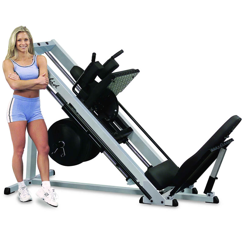 . Body-SolidR engineers knew that the best way to build an explosive lower body, and stay that way, would be to make your workouts incredibly Powerful... Comfortable... and Safe. As you work your quads, glutes, and calves, the engineered smoothness of the Leg Press / Hack Squat Machine spares your bones and joints. Three lockout positions are under the user’s control throughout the exercises and provide user safety and the option of different start / stop positions.